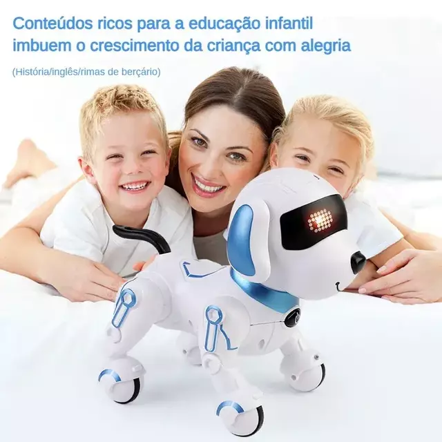 O AutoPup™ – Robô Cão Interativo Inteligente é muito mais do que um brinquedo: é um companheiro que responde comandos, sente toque, faz movimentos acrobáticos, canta, dança e ainda pode ser programado para realizar sequências completas. A criança brinca… e aprende ao mesmo tempo.